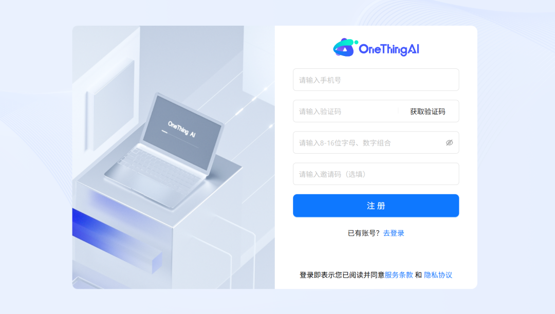 步骤一:访问www.onethingai.com,完成新用户注册。