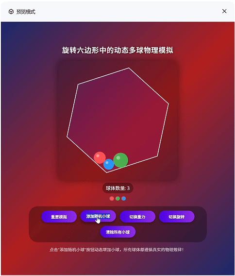 这次,我们让模型在“旋转的六边形中进行多球随机物理模拟”,看看 Qwen3-Max-Instruct 与 Qwan3-2356-A228-Instruc-2507 的代码能力如何: